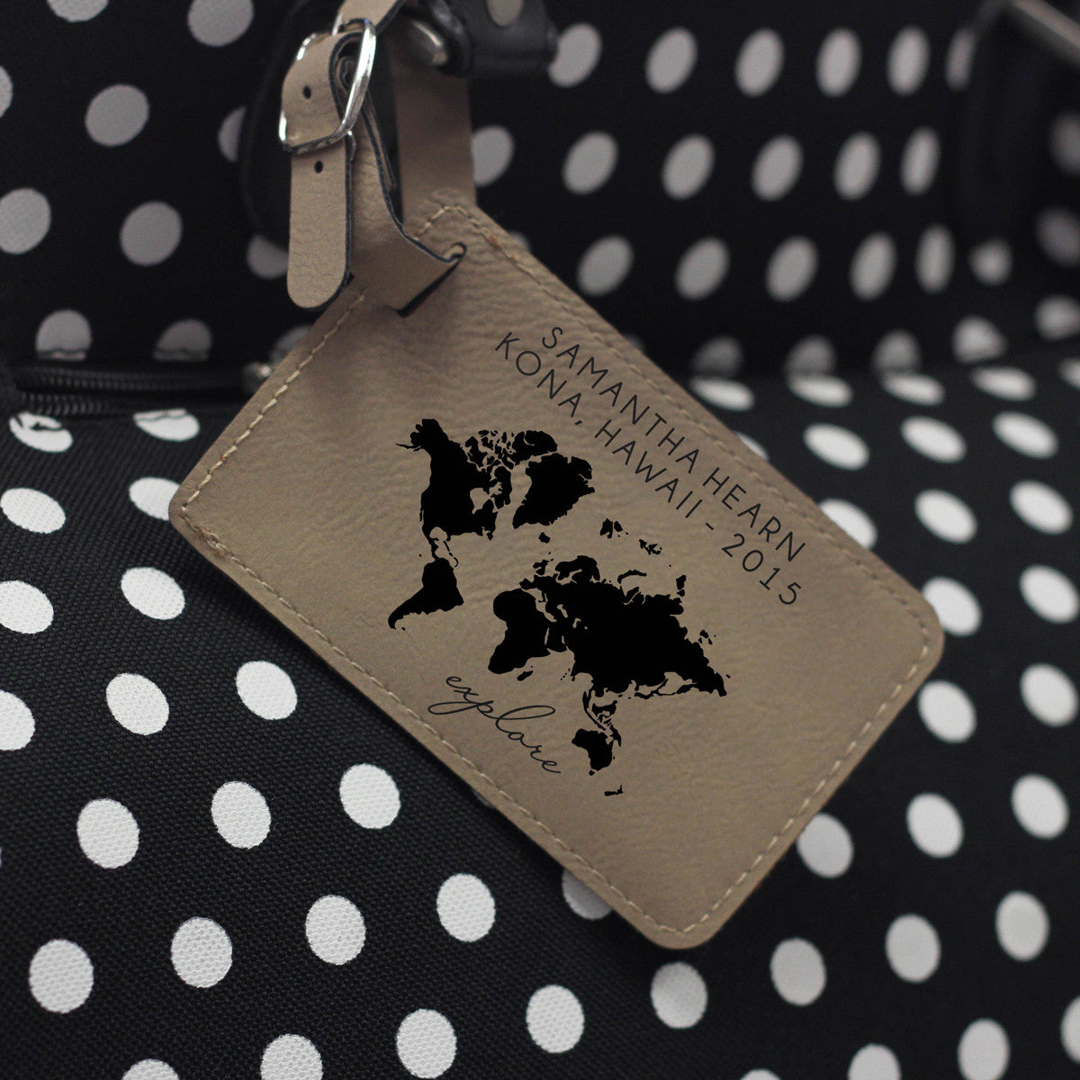 Personalized Leather Luggage Tag “World Map” – Stamp Out